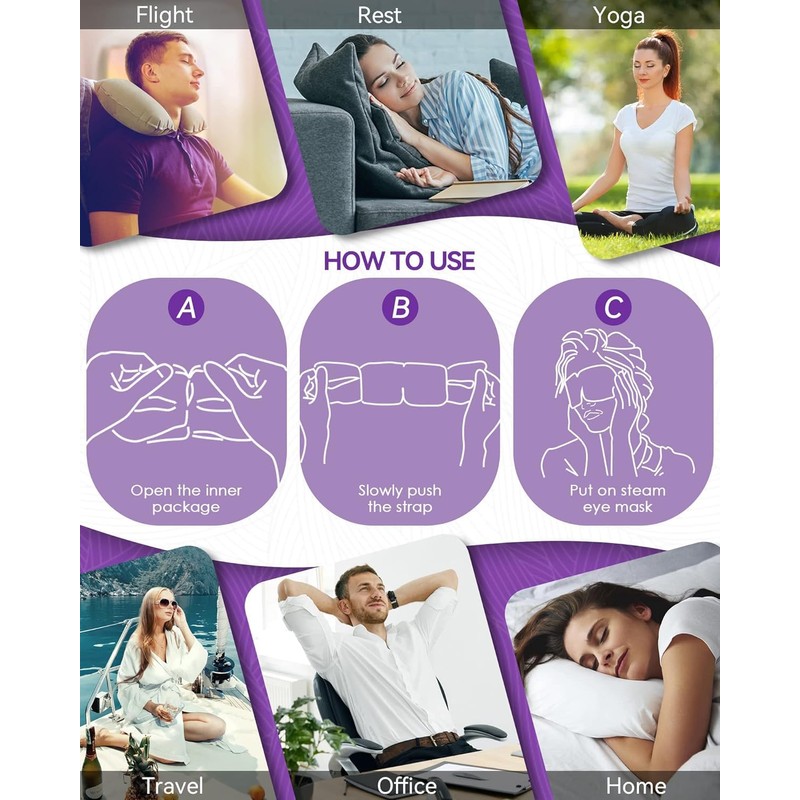 - Steam eye mask: steam eye mask for tired eyes and dry eyes....wear them to sleep take them to travel, tuck it in your purse for a 15 min break at work.The heat feels a bit steamy, it adds a bit of moistness to your (very) dry eyes.So if you have dry eyes or with eye fatigue from looking at a computer for extended amounts of time.these steam eye mask will help you to relief.