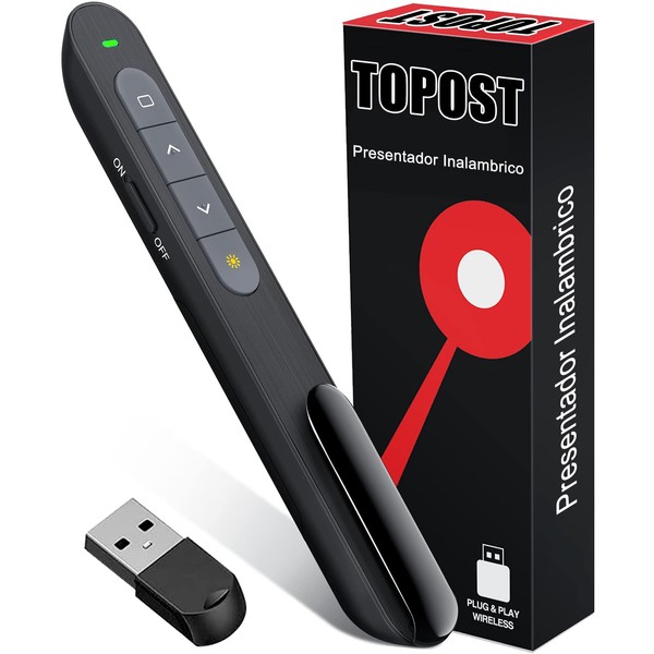 TOPOST Presentador Inalambrico para Diapositivas Presentaciones, Compatible con Windows, Mac, Power Point, Prezi y más. Utiliza 1 Batería AAA