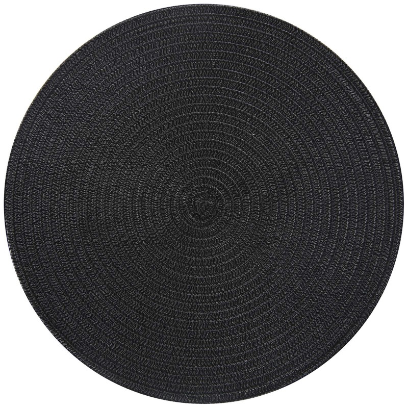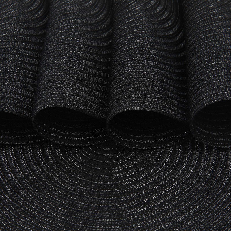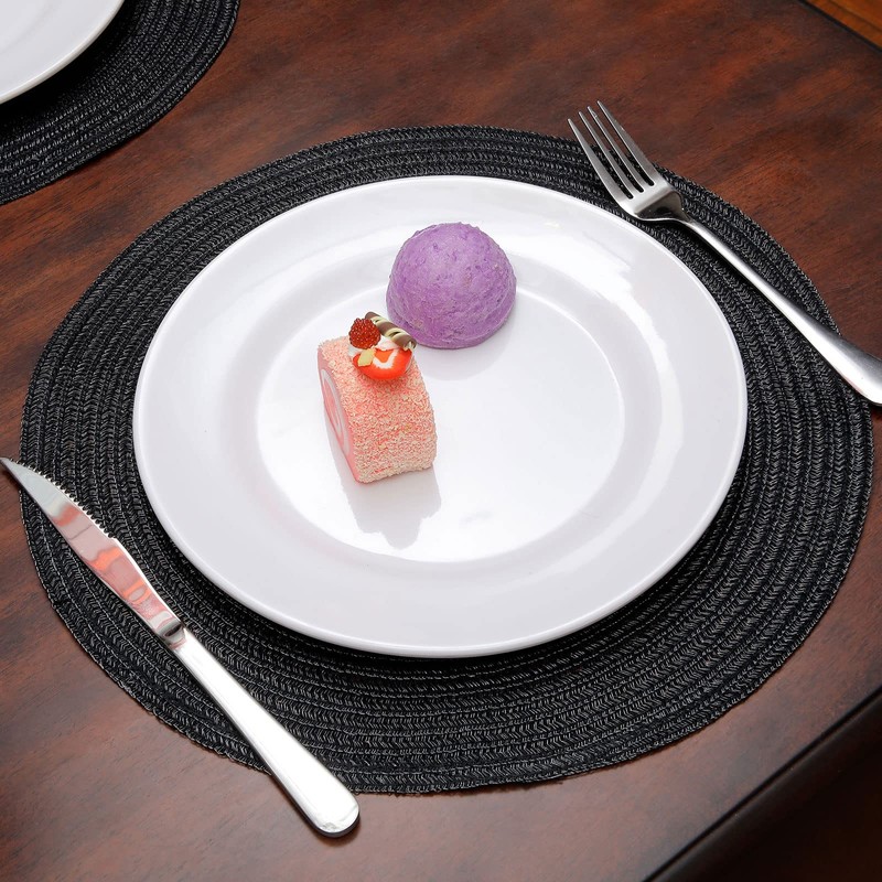 Topotdor 14 Inch Round Placemats Heat-Resistant Stain Resistant Anti-Skid Washable Polyproplene Table Mats Placemats (Black, Set of 6)