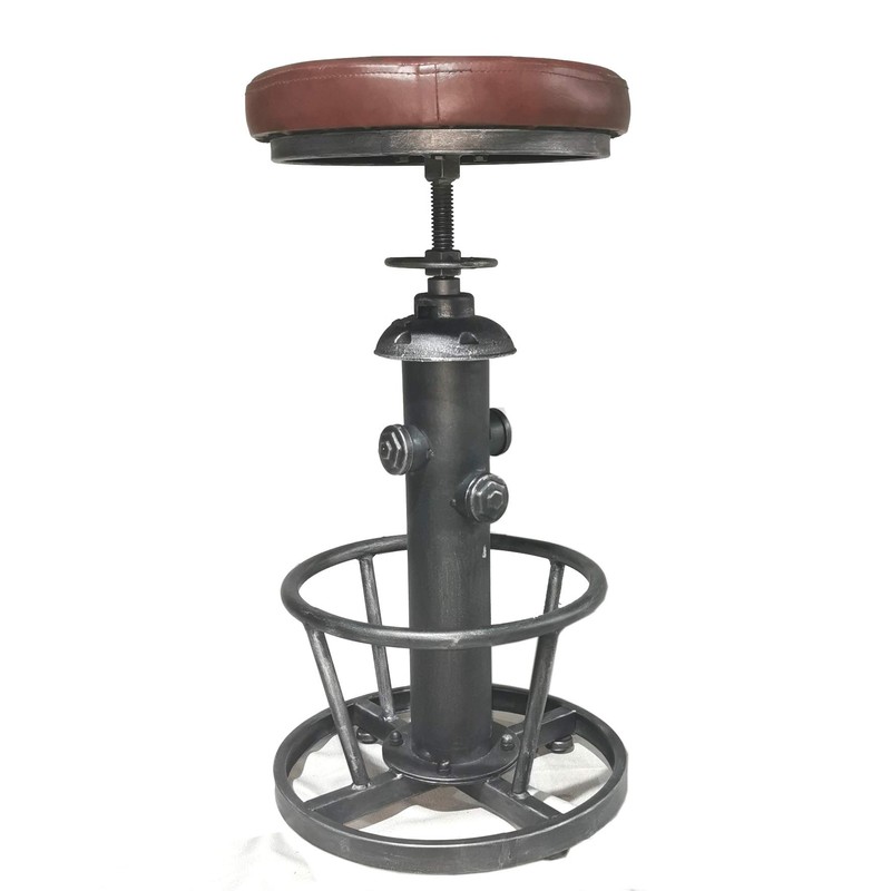 -Vintage industrial look bar stool,is characterized by mix of brown pu leather seat and silvery brush make the stool aged look .Easily matches various decoration style home, farmhouse or vintage kitchen;