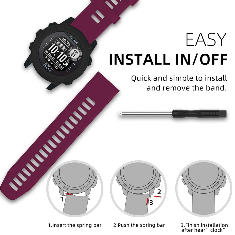 TopPerfekt Sport Bands Compatible with Garmin Descent G1 Solar Watch Band, Soft Silicone Adjustable Watch Strap Replacement for Garmin Descent G1 Solar/Descent G1-Wine Red