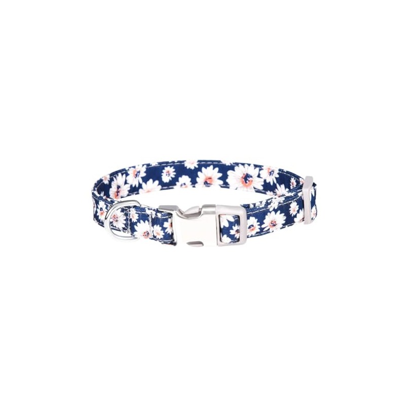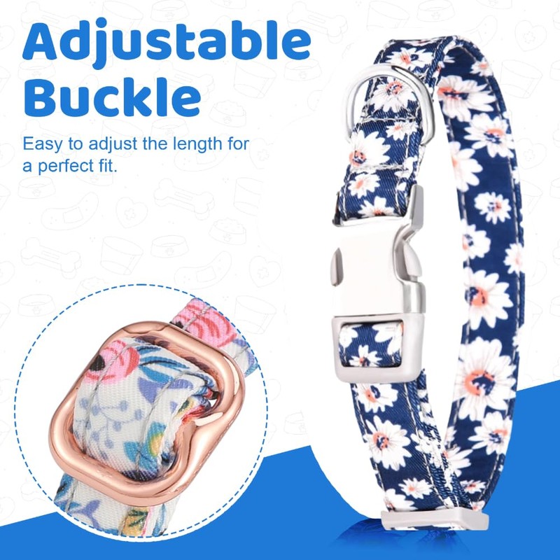 TopPetPro Floral Dog Collar White& Navy Blue Flower for Dog, Adjustable Soft Cotton Cat Collars with Safety Metal Buckle Adjustable Pattern Dog Collar for Puppy [Small] Rose Gold