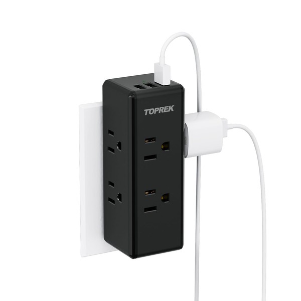- 【SALIDA DE PARED PROTECTORA CONTRA SOBRETENSIONES】- Protección contra sobretensiones incorporada de 1800 julios, el extensor de salida de enchufe múltiple TOPREK le brinda la tranquilidad de saber que sus dispositivos están protegidos contra rayos, sobretensiones o picos, mucho más para brindar energía segura, le permiten usar sus dispositivos de forma segura.