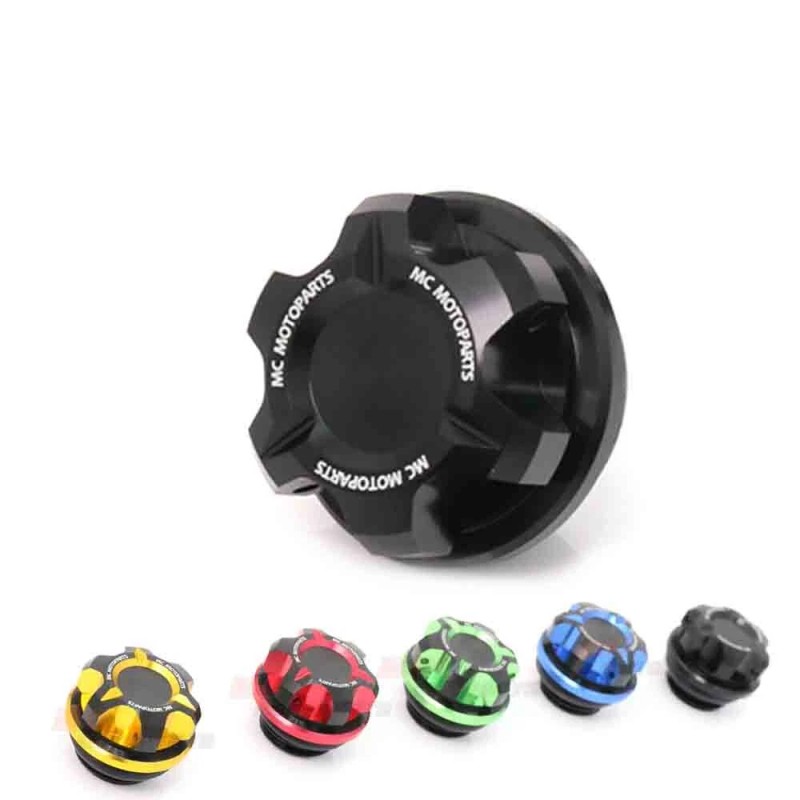 T-Axis CNC Oil Filler Cap**WE HAVE 5 COLOR CHOICES** 5 color choices : Black / Blue / Red / Gold / Green This product series has dual anodized color which is innovative and attractive than others. Best match with your motorcycle. Rubber seal O-ring is included for preventing oil leaks. Let’s install our oil filler cap for decorating your motorcycle now.