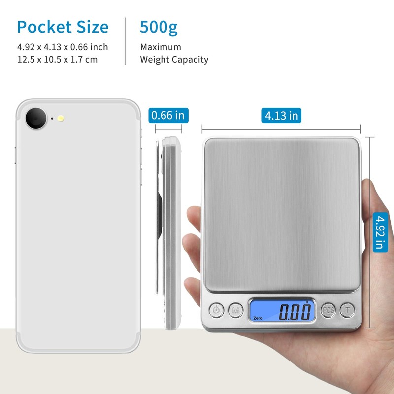 Toprime Digital Gram Scale 500g 0.01g Food Scale High Precision Kitchen Scale Multifunctional Stainless Steel Pocket Scale with Back-Lit LCD Display Tare PCS Features Silver | toprime