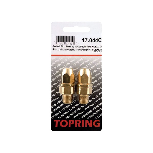 TOPRING 17.044C FLEXCOIL Replacement Swivel Hose-end Fittings, 1/4 I.D. X 1/4(M) NPT, Pack of 2 Fittings, Series 17