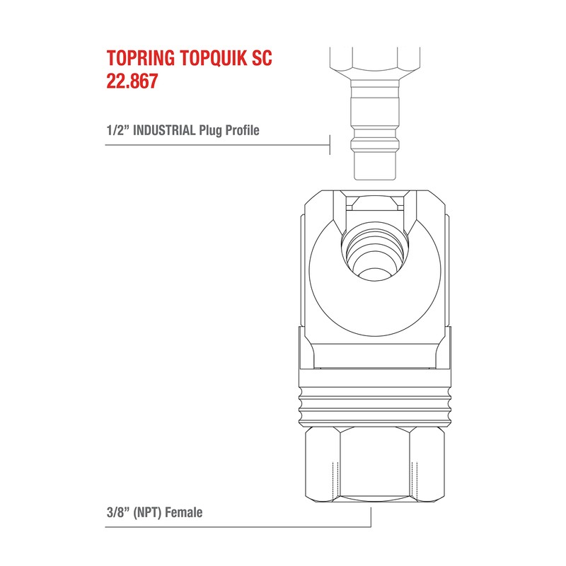 TOPRING 22.867 TOPQUIK SC Quick-Connect Coupler, 1/2 Industrial Plug Profile, 3/8(F) NPT Inlet, (RTC 460.11 SNO 17 / SC-H/TST 20500109), Series 22