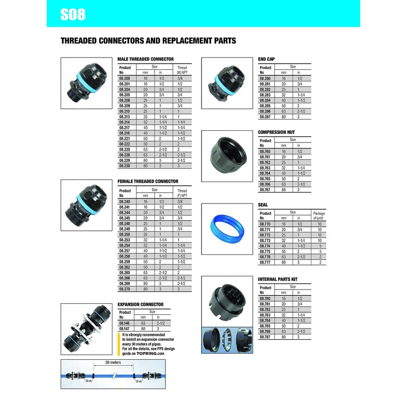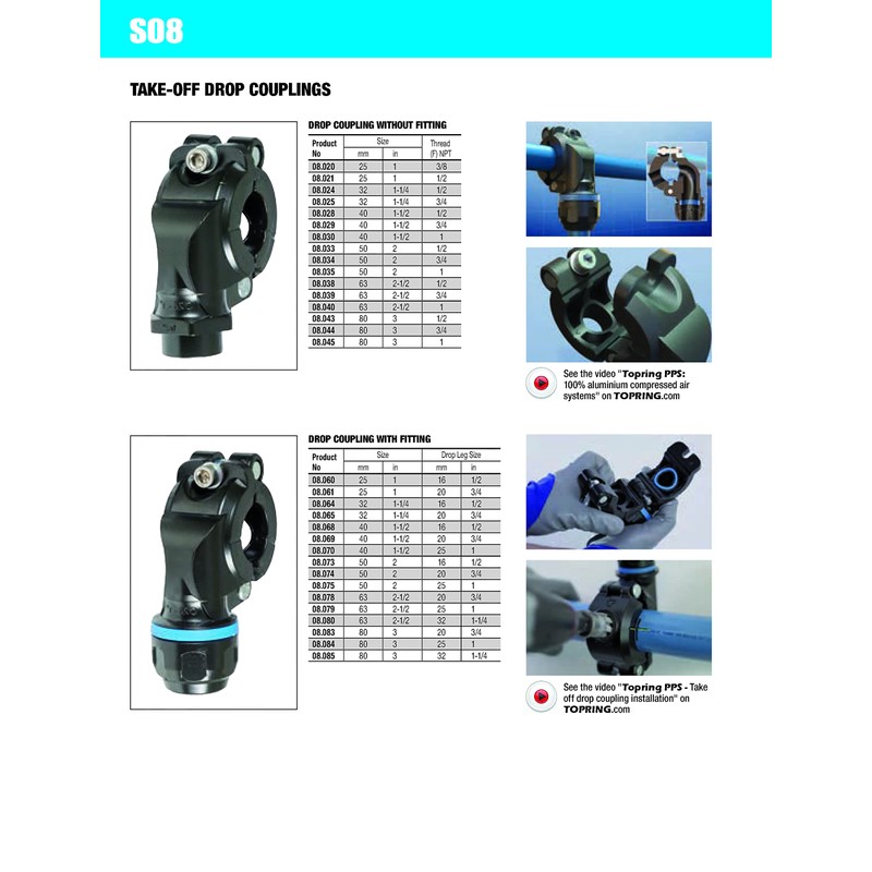 TOPRING PPS 08.332 CRN Compressed Air Piping System Aluminium Fitting, Equal ...