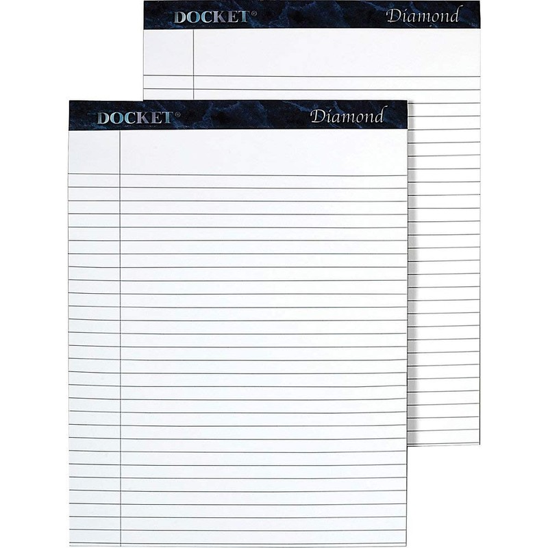 TOPS Docket 100% Recycled Diamond Premium Stationery Tablet, 8-1/2 x 11-3/4 Inches, Perforated, White, Legal/Wide Rule, 50 Sheets per Pad, 2 Pads per Pack (63975)