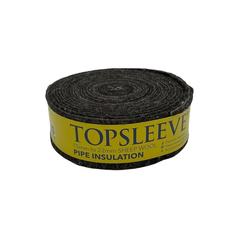 Transform your pipe insulation with this premium Topsleeve sheep wool pipe insulation roll. Designed to fit pipes ranging from 15mm to 22mm in diameter, this versatile 7.2-metre roll provides excellent thermal protection and sound dampening properties. The natural sheep wool construction creates an effective barrier against heat loss, helping to maintain consistent temperatures in your plumbing system. Perfect for both copper and plastic pipes, this black insulation sleeve is easy to install and offers reliable performance. The dense wool material helps prevent condensation and reduces noise from water flow. Whether you're upgrading your home's plumbing or working on a new installation, this insulation roll delivers professional-grade coverage. Each roll provides ample material for multiple pipe sections, making it an efficient choice for various plumbing projects.