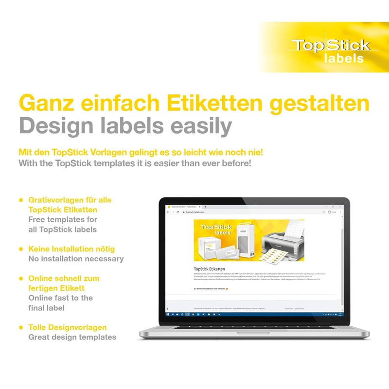 - Box contents: 2100 x TopStick labels, DIN A4 format, 7 x 4.23 cm, rectangular, white (100 sheets each 21 labels)