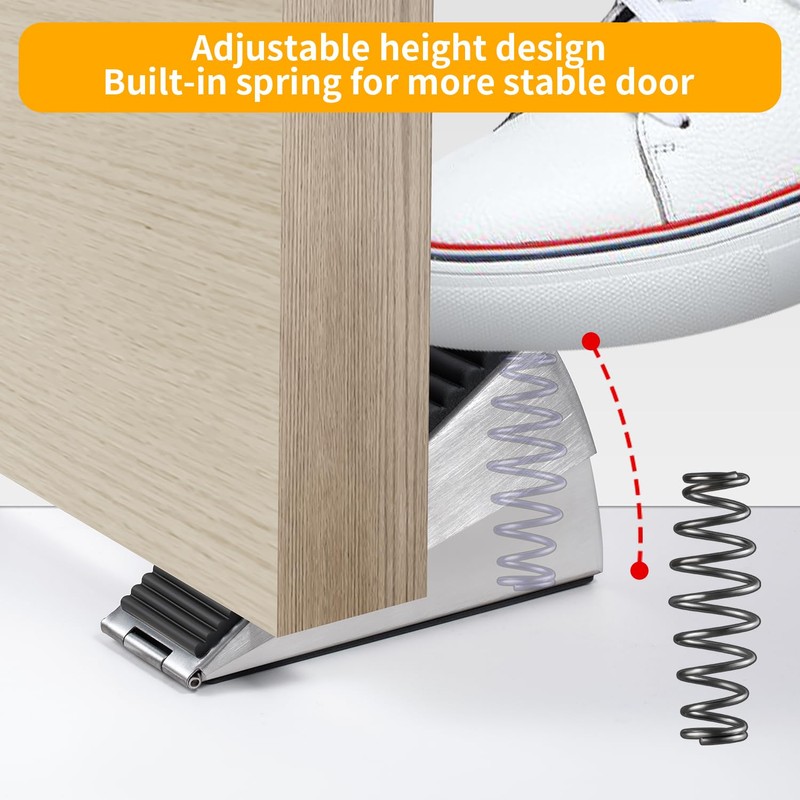 - Biggest and Strongest Door Stop: Heavy-duty metal door stoppers, made from stainless steel, standing 3 inches (76mm) tall, ensuring your door remains firmly in place even with strong gusts of wind.