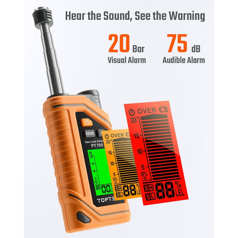 TOPTES TopTes PT760 Rechargeable Natural Gas Detector, Gas Leak Detector with 12-inch Extendable Probe,%LEL Propane Leak Detection with Built-in Flashlight for Methane, Butane and More for Home, RV