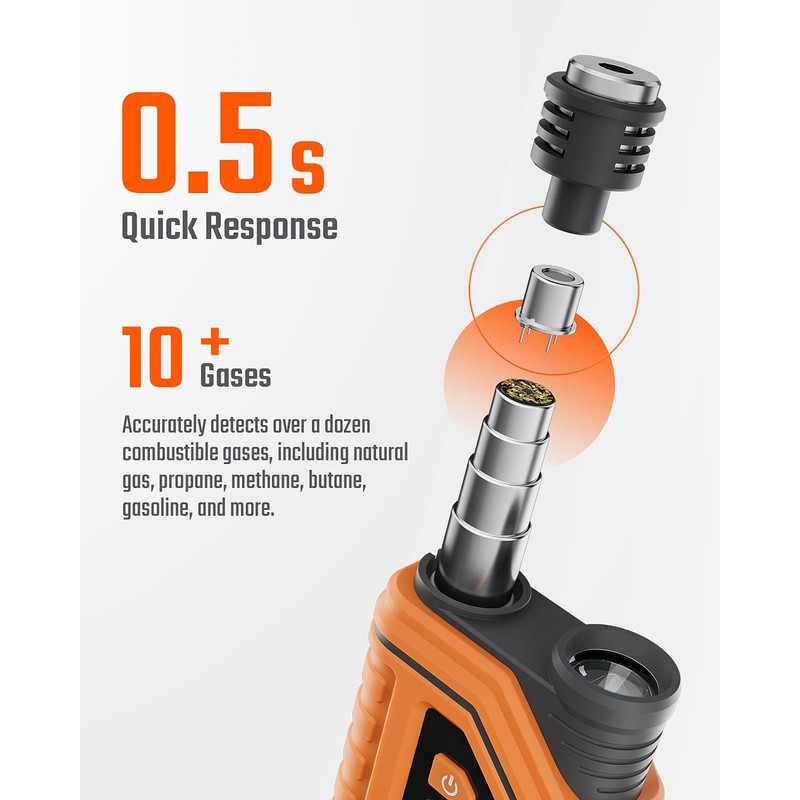 - Telescopic Stainless Steel Probe for Versatile Applications: With its -inch stainless steel telescopic probe, the PT gas leak detector allows you to effortlessly detect gas leaks in narrow and hard-to-reach areas, such as inside pipes and behind cabinets. After inspection, simply retract the telescopic rod, making the entire device compact, portable, and easy to store in the included protective box