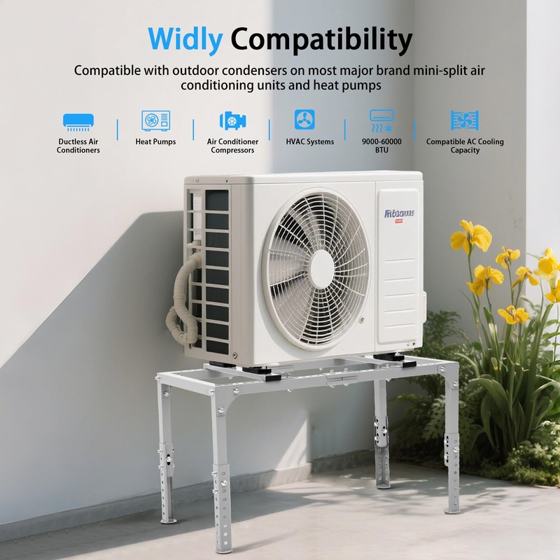 - Adjustable Width and Height: Easily adjusts to fit different sizes of air conditioning unit condensers, very stable after installing the mini split base,Adjustbale mounting length 6.3-32.6inch,Adjustbale height 16.37-21.96inch