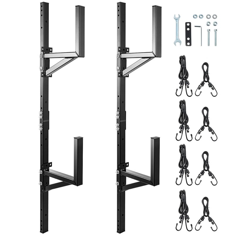 - Quick Assembly:The pre-drilled holes of our side mount ladder racks line up perfectly, making it quick and easy to assemble. And the 4 adjustable brackets can be installed at varying heights to meet your needs