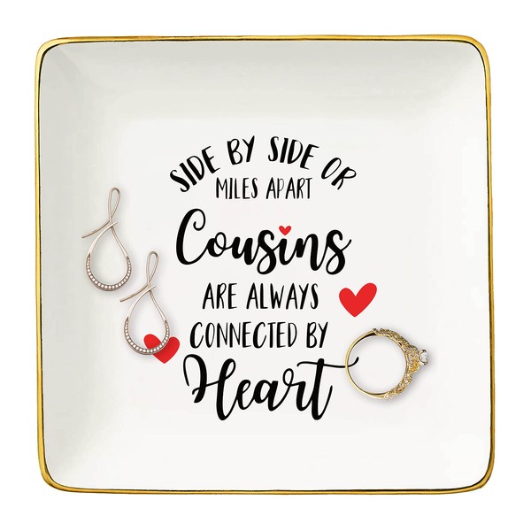 Topthink Side by or Miles Apart Cousins Are Always Connected Heart - Ceramic Jewelry Holder Ring Dish Trinket Tray Birthday Christmas Graduation Wedding Long Distance Going Away Gift for Cousin Her