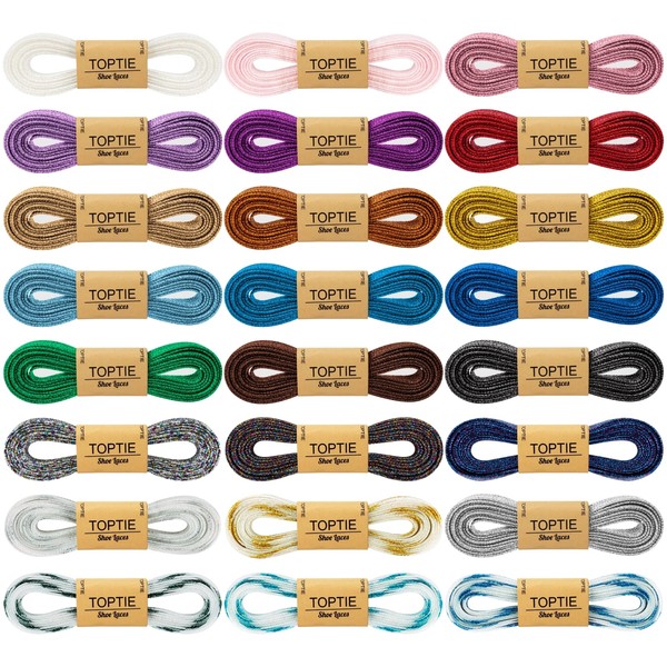 TopTie 24 Pairs Glitter Shoe Laces, Metallic Sparkly Shoelaces, 48Inch Flat S...