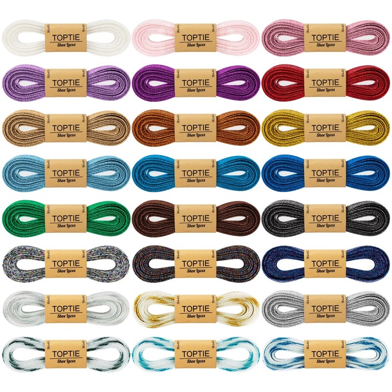 • TOPTIE shiny shoelaces fit for sneakers, casual shoes, athletic shoes, running shoes, board shoes, climbing shoes, hiking boots, roller skates, ice skates, snow boots and so on.