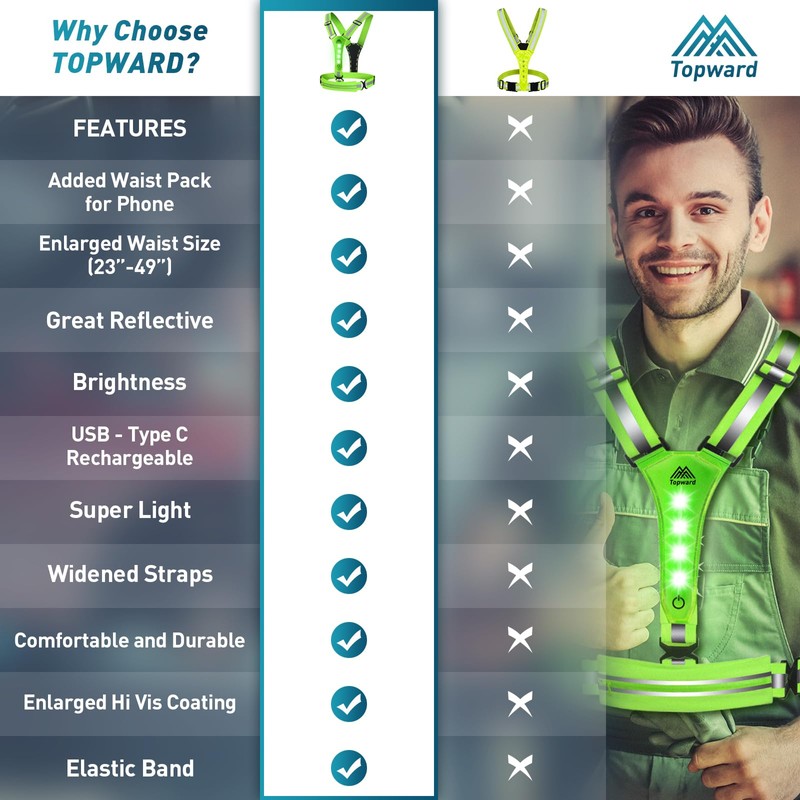 - Enhanced Visibility and Safety - Our LED reflective vest is designed with ultra-bright LED lights and reflective strips, ensuring you stay visible and safe during nighttime activities. Perfect running vest for men and women.
