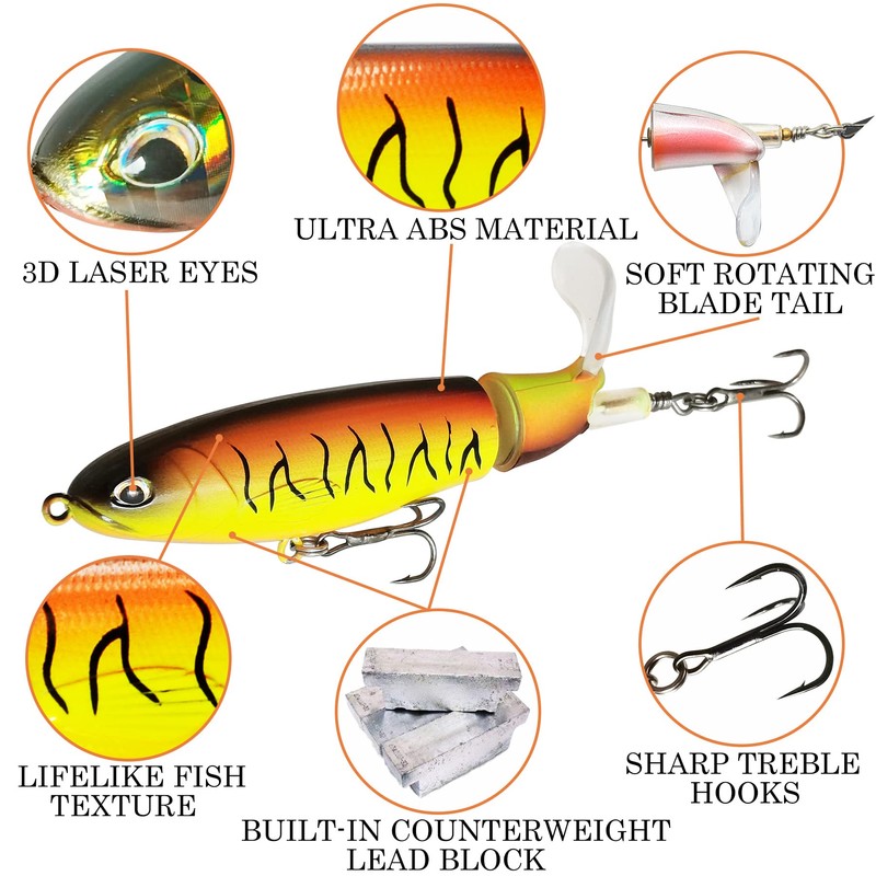 - 【Surface Tethered Lures】Natural horizontal surfacing,it is a surface pencil shaped lure that continuously causes splashing and puffing sounds on the water surface, simulating real fish floating and swimming, which is a deadly lure for fierce predatory fish.