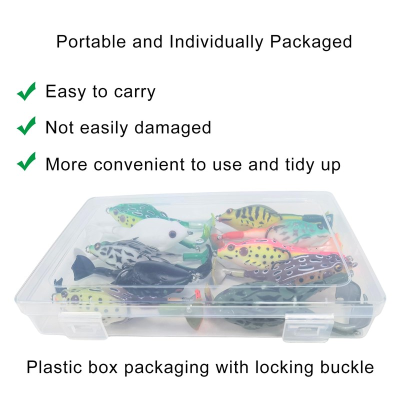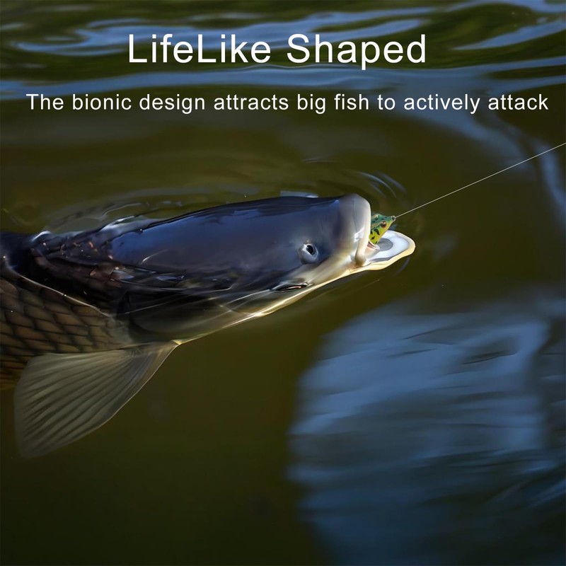 • 【Long Casting & Multi-Color】Measuring 3.5in/13g, these frog lures cast far and come in 10 vibrant colors. Whether you need a popping action or steady retrieve, they dominate top water frogs fishing!