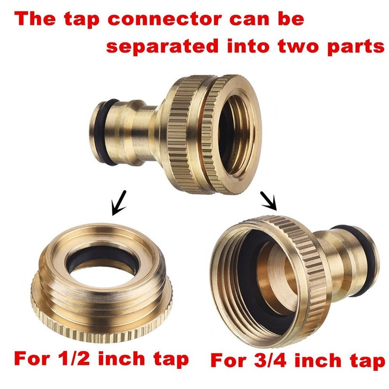 - 2in1 Connector: 3/4 inch and 1/2 inch BSP Metal Brass tap connector suitable for use with 95 per cent of all outdoor taps.(The Tap should with Male Threaded )