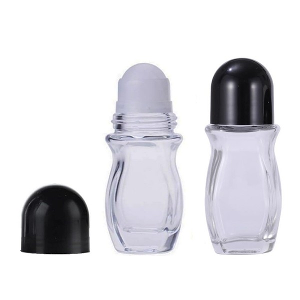 TOPWEL 2PCS 50ml/1.69oz Empty Clear Deodorant Glass Roller Bottles Refillable Massage Roll-On Bottles Containers with Plastic Roller Ball and Black Cap for DIY Deodorant Massage Oil Aromatherapy