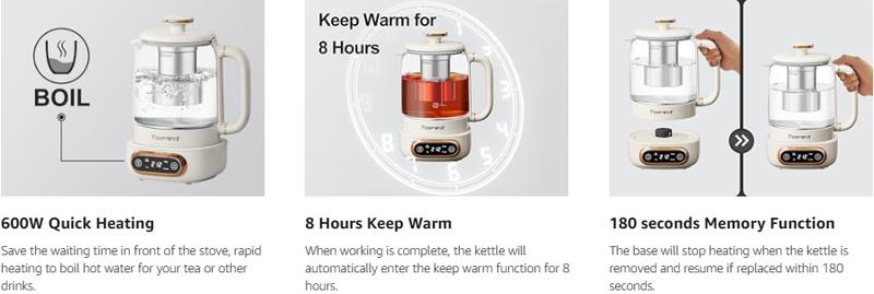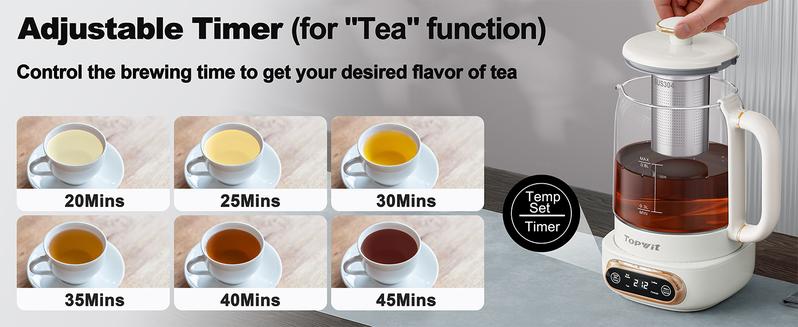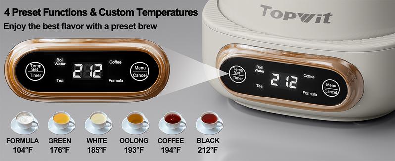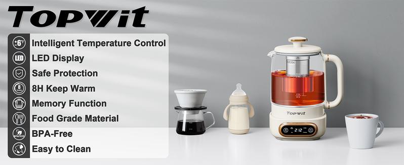 Topwit Electric Tea Kettle, 11 Temperature Control & 4 Presets Glass Kettle with Removable Infuser, 0.8L Electric Kettle for Coffee, Formula, Tea Maker with 8H Keep Warm, Boil-dry Protect, Beige cos origlass boil dry protection