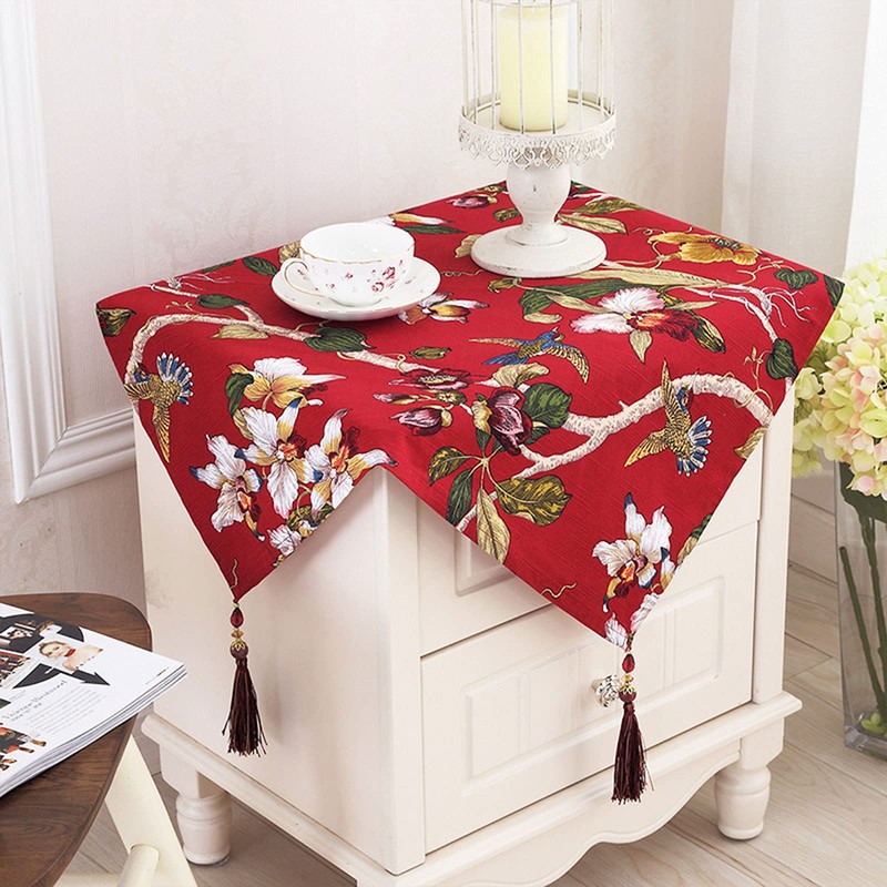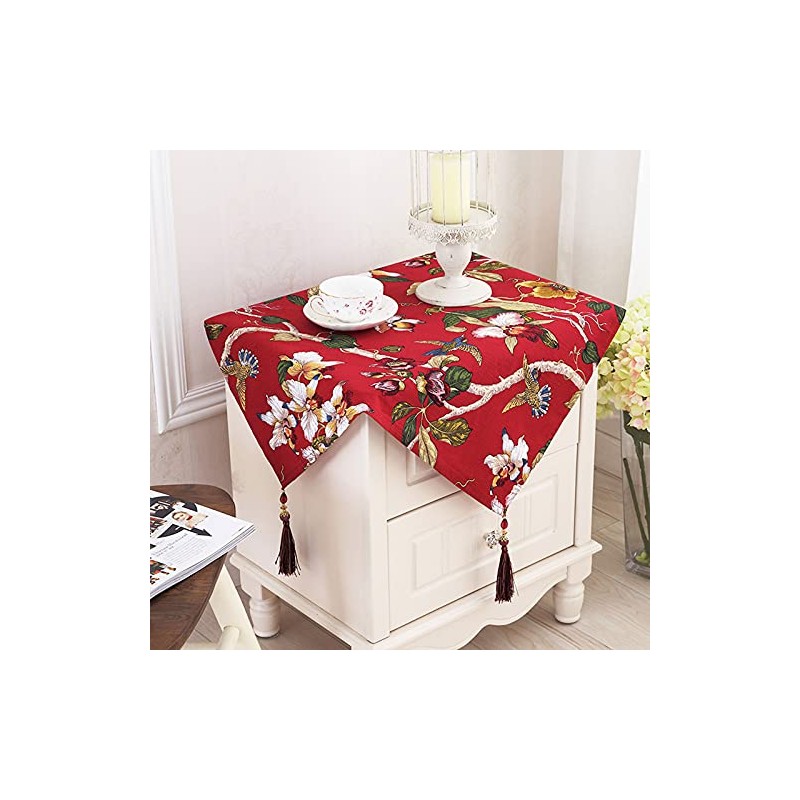 Topwon Bedside Tablecloth Rustic Table Cover for Nightstand End Table Dust Proof Cloth with Tassels (Red)