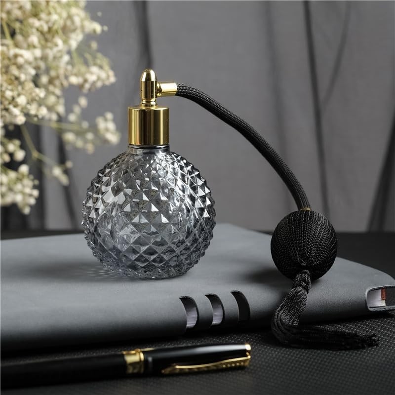 Topxome 100ml Air Bag Perfume Bottle Vintage Glass Perfume Bottle With Atomizer Empty Cosmetic Mini Refillable Bottle (Black)