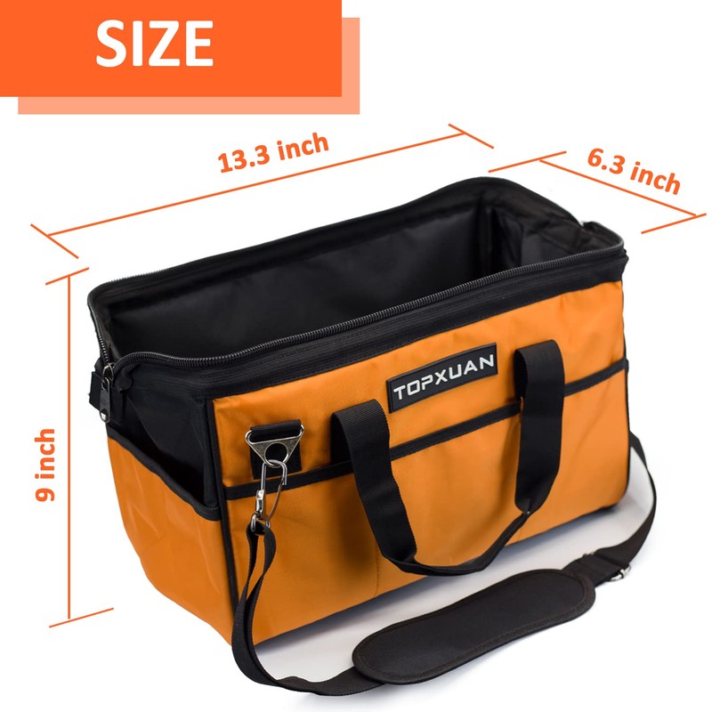 TOPXUAN Tool Bag 13 Inch Waterproof Orange Tool Organizer with Wide Mouth and Shoulder Strap for Power and Small Hand Tools Oxford Cloth Fabric(18 Pockets)