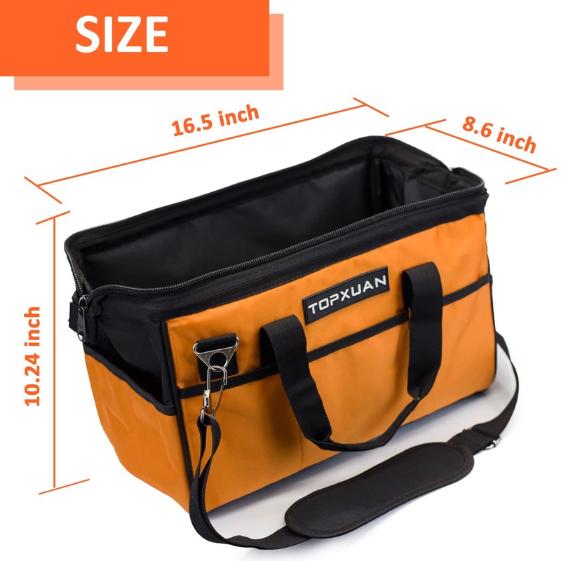 TOPXUAN Tool Bag16 Inch, Heavy Duty Waterproof Orange Tool Organizer with Wide Mouth and Shoulder Strap for Power and Small Hand Tools, Oxford Cloth Fabric (18 Pockets)