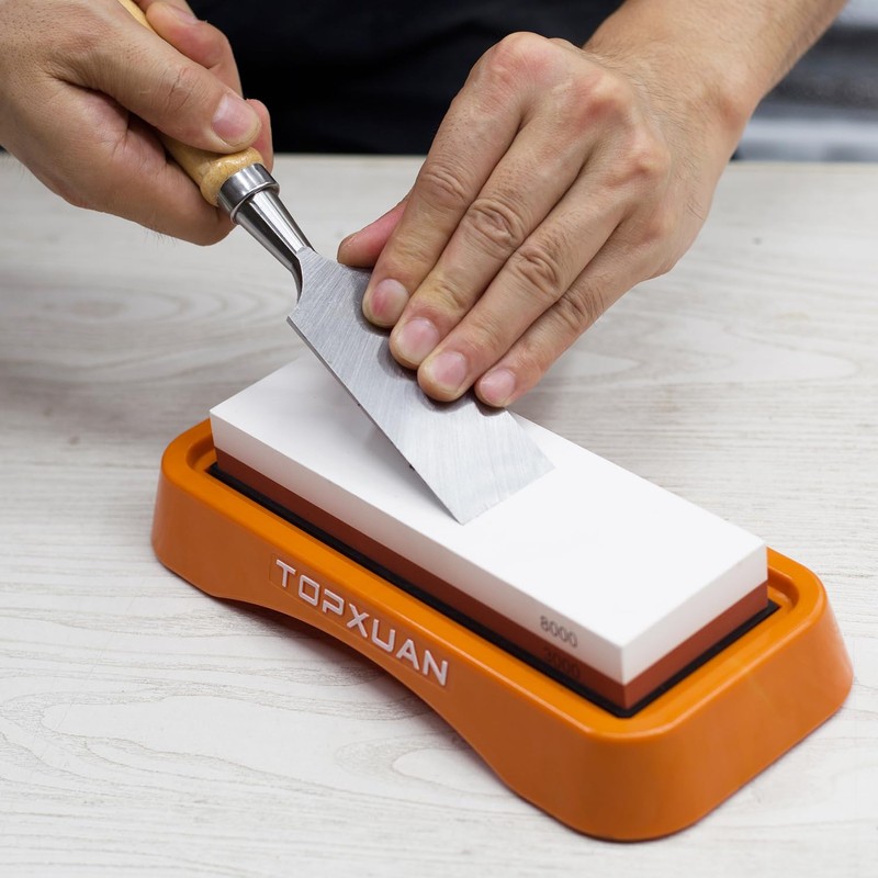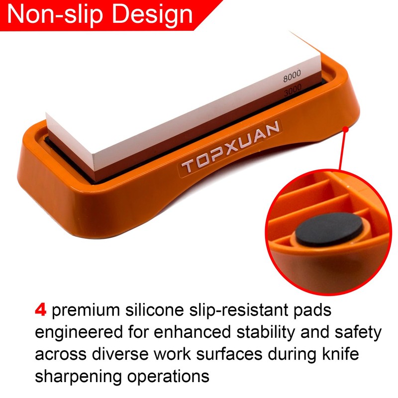 TOPXUAN Whetstone Knife Sharpening Stone 2 Sided 3000/8000 Waterstone, Professional Kitchen Knife Sharpener with Orange Plastic Base, Non-Slip Rubber and Angle Guide