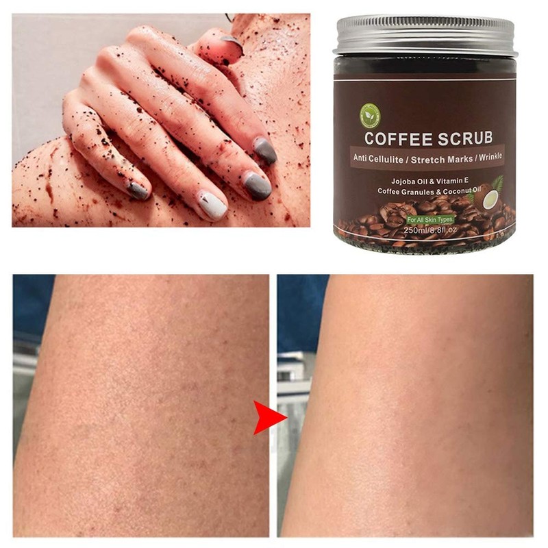 Enthält Koffein, das den Fettabbau fördert und Fett verbrennt. Beschleunigen Sie die Durchblutung durch Massage, um die Haut zu straffen. Enthält Antioxidantien, verlangsamt die Hautalterung, mildert Falten, Sonnenbrand usw. Um die Augen herum angewendet, kann es die Augenringe verdünnen und die Schwellung der Augen beseitigen. Kaffeepartikel werden mechanisch abgeblättert, wodurch Chemikalien ersetzt werden, die sicher und nicht reizend sind. Enthält Koffein zur Vorbeugung von Krampfadern, zur Reduzierung von Narbenbildung und zur Straffung der Haut. Bei Akne, Cellulite und Dehnungsstreifen haben sie eine gute Wirkung.
