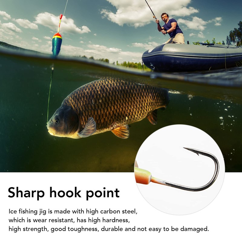 - HIGH CARBON STEEL: Ice fishing jigs head adopts high carbon steel material, firm and sturdy, anti impact and stable, not easy to damage, durable for use.