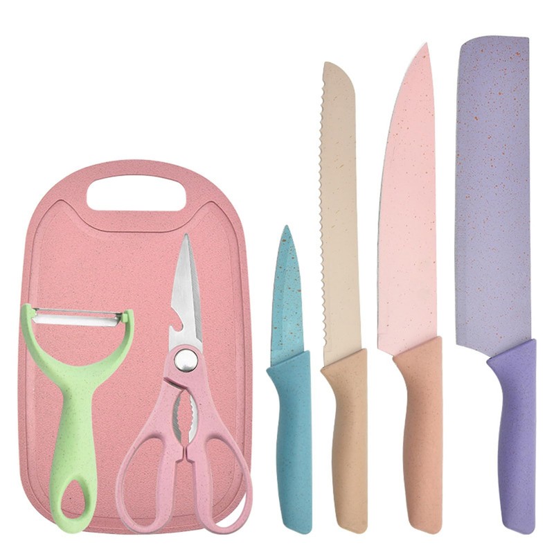 Package List:1 x Chef Knife1 x Bread Knife1 x Knife1 x Peeling Knife1 x Scissors1 x Peeler1 x Chopping Board