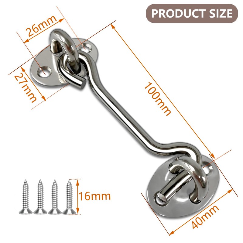 TOPYWMSP Hook and Eye Latch 1Pcs 4 Inch Stainless Steel Cabin Hook for Door,Gate,Window(100mm)