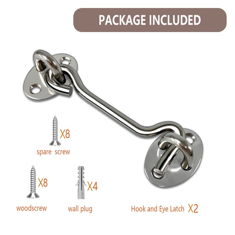 - MULTI-PURPOSE:This hook and eye latch can be used for bedroom door lock、garden gate latch、shed door latch,window latch.