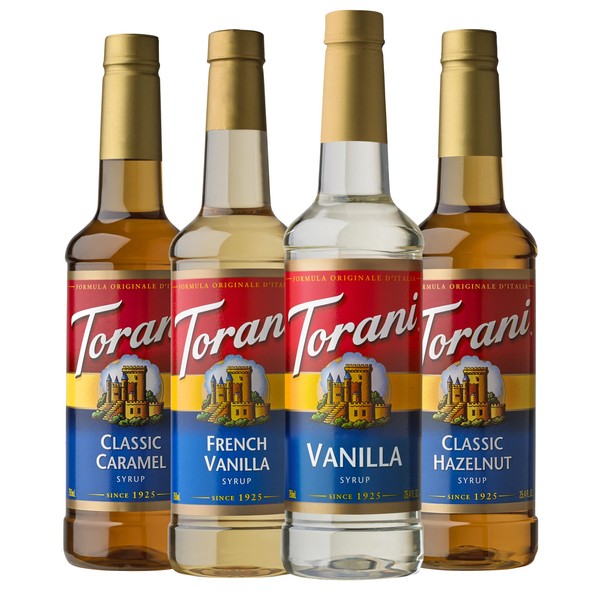 Torani Variety Pack Caramel, French Vanilla, Vanilla & Hazelnut, 25.4 Ounces (Pack of 4)