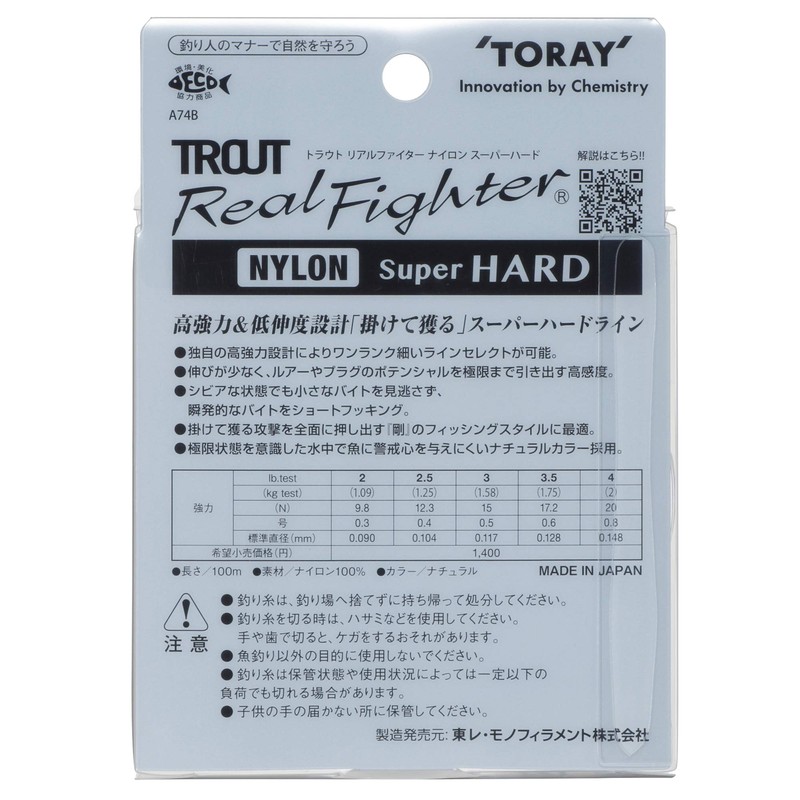 Toray Line Trout Real Fighter, Nylon, Super Hard, 328.4 ft (100 m), 3 lb