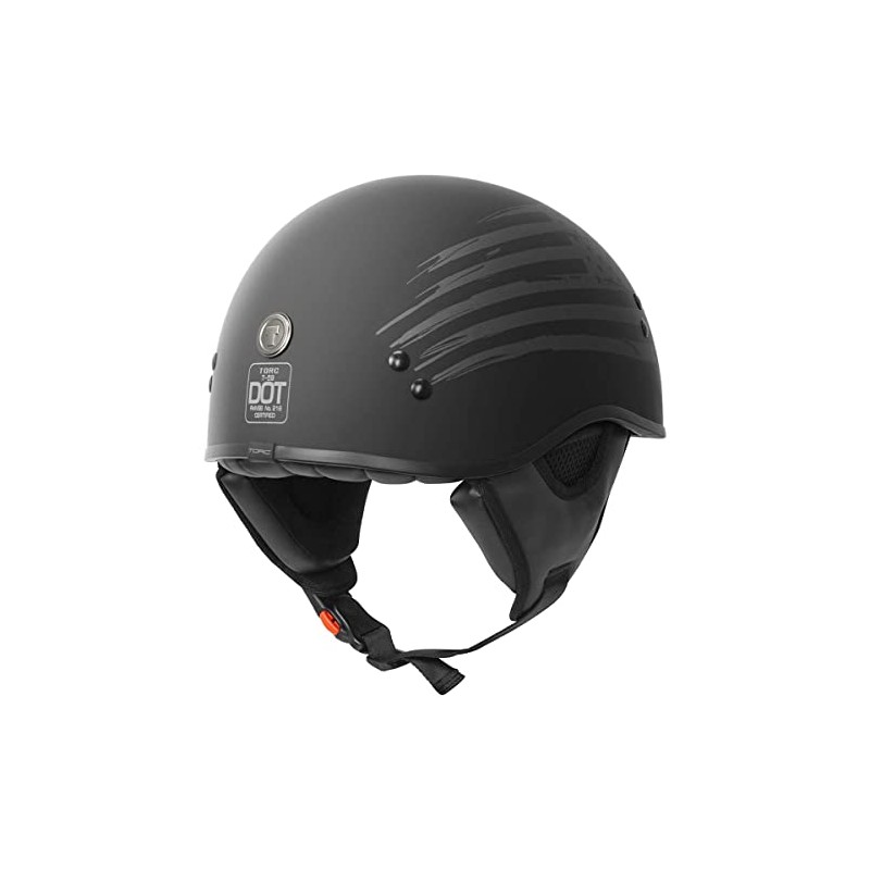 TORC T59 Motorcycle Half Helmet with Magnetic Buckle DOT Approved with 'Flag” Graphic (Matte Black Flag, Medium)