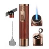 - 【All-in-one Windproof Torch Lighter】 This torch lighter integrates a windproof jet flame, hidden holder, punch, and draw enhancer tool, easily meeting the full process needs from lighting to enjoy. The straight and compact body design is easy to operate with one hand. The unique wood grain and metal elements are cleverly combined to present a perfect collision of classic and modern. Whether it is traveling or partying, this lighter is your right-hand partner (Note: Does not contain butane)