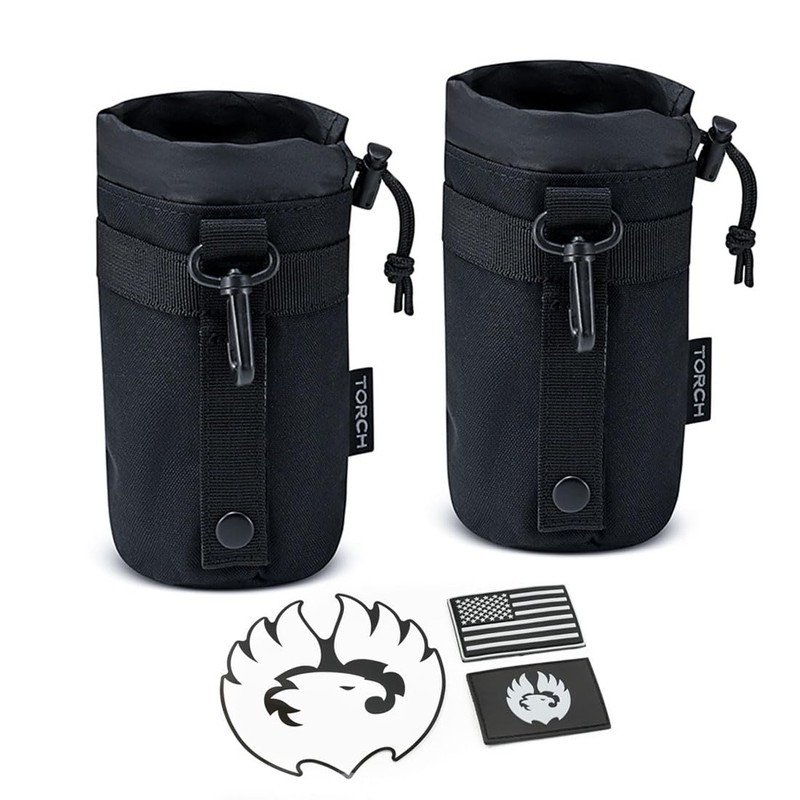 Torch MOLLE Water Bottle Holder Drawstring Pouch Tactical Hydration Carrier Attachment for Every Day Carry Gear (Black 2-Pack)