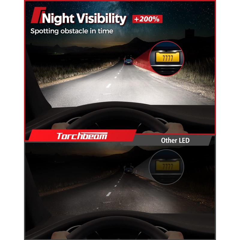 Torchbeam 9007 Fog Light, Super Bright 6500K White 9007 Fog Bulbs, Plug and Play, Pack of 2