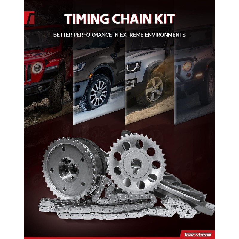 - [High Quality Materials]: The Torchbeam timing chain kit is made of top-quality materials and is manufactured to OEM specification. High-strength steel chains and heat-resistant guides reduce stretch and noise, extending engine lifespan. Rigorously tested for 100K+ mile reliability.