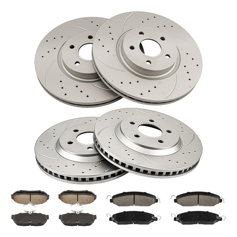 Torchbeam Front and Rear Brake Pad & Rotor Kit Brake Pads Brake Rotor Ceramic Compatible with Ford Mustang 2006 4.6L, Drilled Slotted 11.81'' inch(300mm) Rear and 12.44'' inch(316mm) Front Rotor