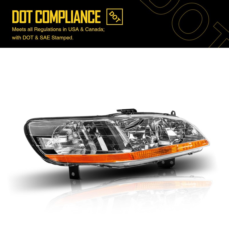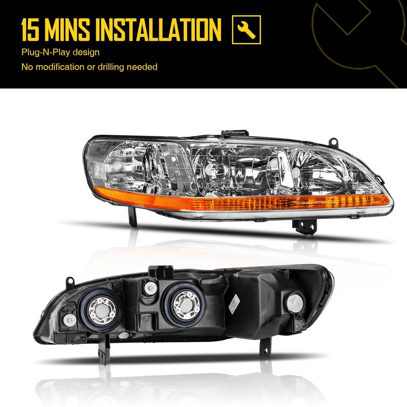 Torchbeam Headlights Assembly Compatible with 1998 1999 2000 2001 2002 Honda Accord Front Light Amber Reflector Chrome Housing Headlamp Replacement Driver and Passenger Side