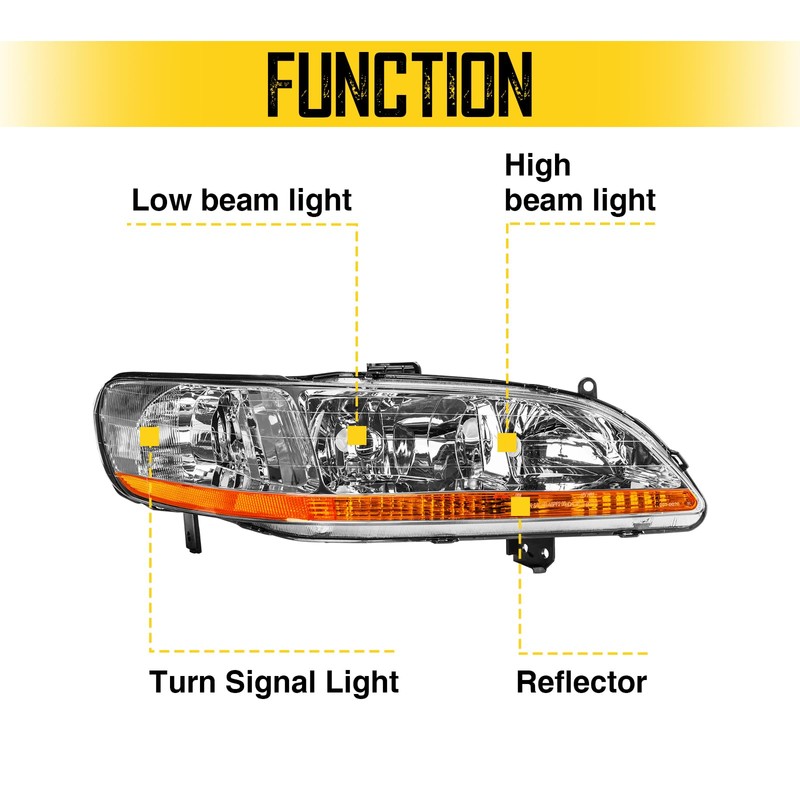 - 【Safety Reflector】Torchbeam Headlights Assemblys Compatible with 1999 Accord, sided micro-prism reflector with 180% brighter, provides more light output with a wider, smoother beam, makes the oncoming cars or passerby quickly notice you at night, providing drivers with a clearer and longer field of vision, allowing you to see farther at night, enabling them to see obstacles in advance and prevent dangers in advance, ensuring your driving safety and others.