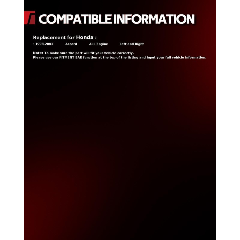- 【Vehicle Fitment】Torchbeam Head Light Assembly Compatible with Honda Accord 1998 1999 2000 2001 2002. OE # 33151S84A01, OE # 33101S84A01. The headlight assembly housings are made of premium OEM Grade ABS plastic ensure excellent resistance from branches, gravel and some collisions.